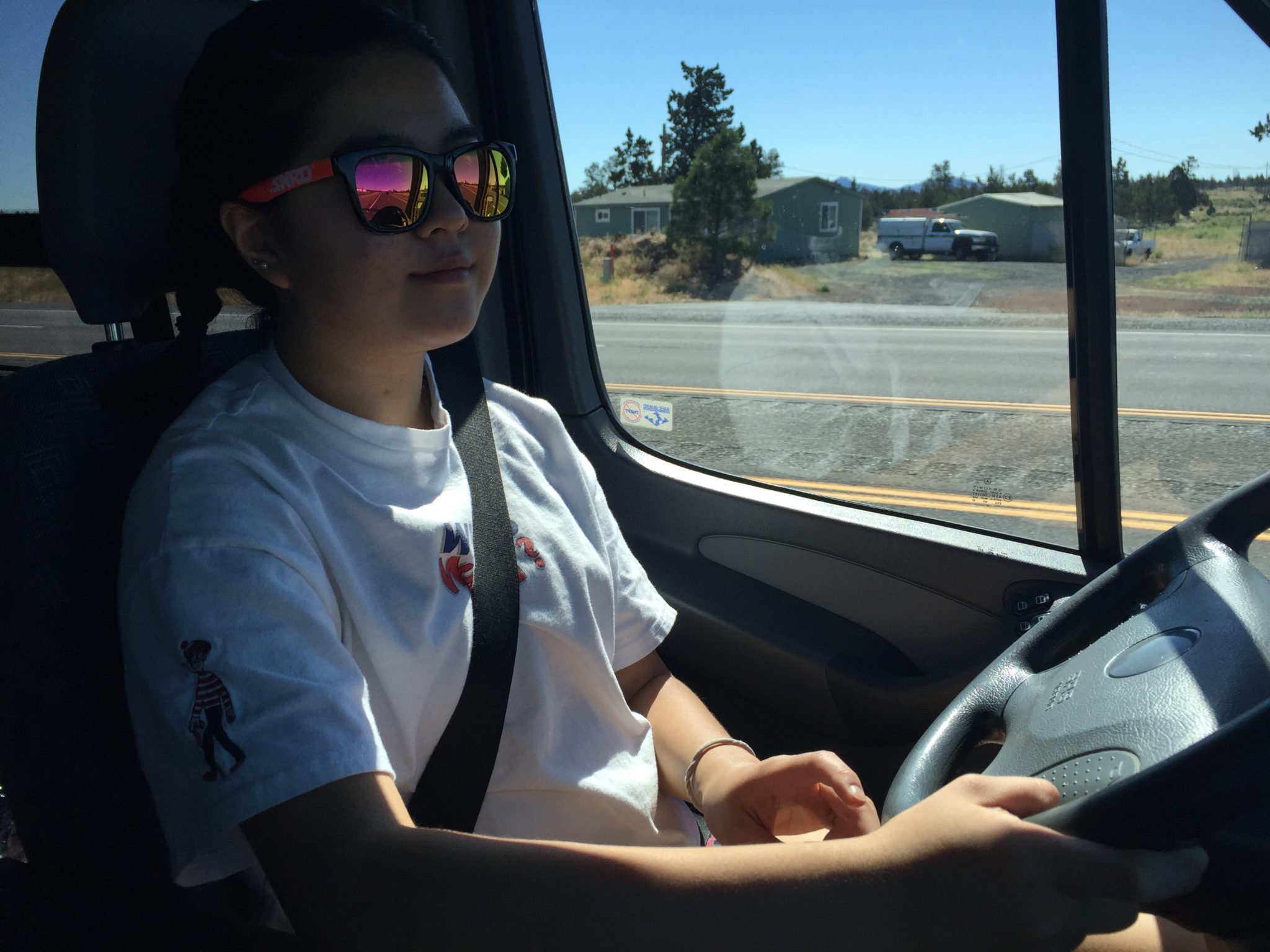 We made it to Ashland, OR on July 4th, we missed the morning parade but met up with friends and family for some celebration. We left the Kennewick, WA Walmart parking lot at 4:30 a.m. and the girls slept the first couple of hours while I drove. At Biggs Junction Tress drove for two hours and then Savina for about 2 hours. They both took turns napping as we only slept for about 4 hours in Kennewick.