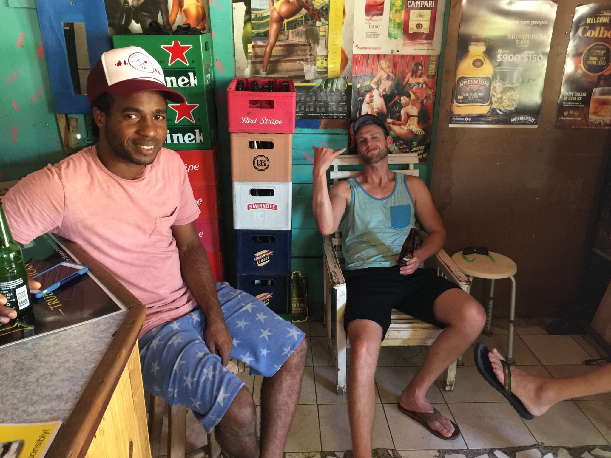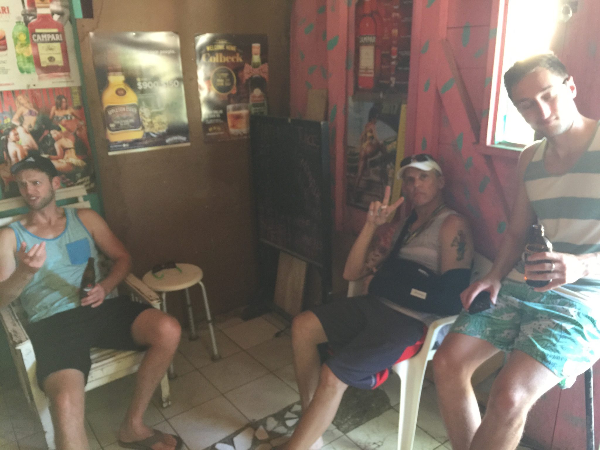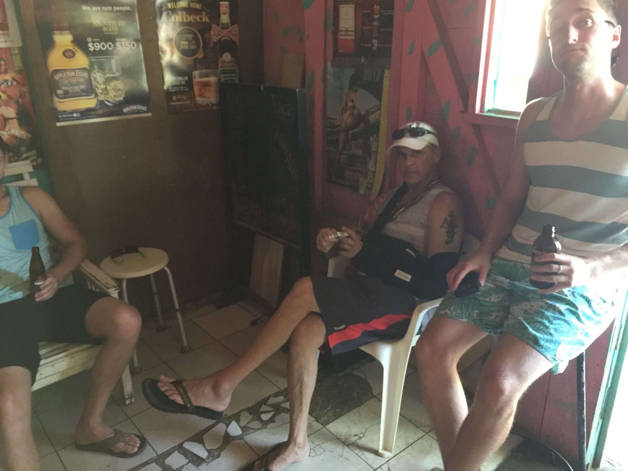 Robby and Octavius enjoying a beer at Antoinette’s place on the south coast of Jamaica in Whitehouse. Ray and Patrick below.